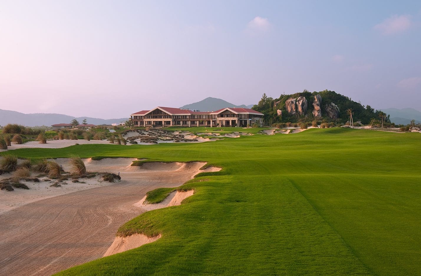 Your journey moves between its two crown jewels: the volcanic wonderland of Mission Hills Haikou, Asia’s largest and most visually striking golf complex, and the breathtaking Shenzhou Peninsula, where coastal holes glide toward golden sands and the ocean glows at sunrise. The rhythm of the trip is guided by the game itself—morning tee times, championship layouts, and that familiar sense of anticipation as you stand on the next tee—while still leaving space to savour hot-spring soaks, curated island dining, and the beauty of China’s southern coastline.